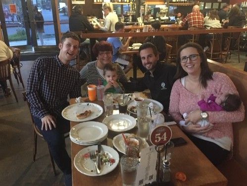 A year after the diagnosis, Steve was in the hospital for a month while being treated with chemotherapy. On Christmas Eve, the Rzesuteks were surprised with a visit from Pastor Aaron Stewart.