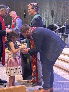 We believe that baptism is a symbol of being brought into the Christian family, and therefore we believe baptism is for all ages. If you are interested in learning more about baptism, or having your children baptized, please contact Ashli Veitch to set up a time to meet with one of our pastors. We schedule baptisms on the third and fourth Sundays of the month. Because baptisms are scheduled with consideration for which pastor is available and other items on the schedule, please do not make any permanent travel arrangements until your date is confirmed with the pastors.